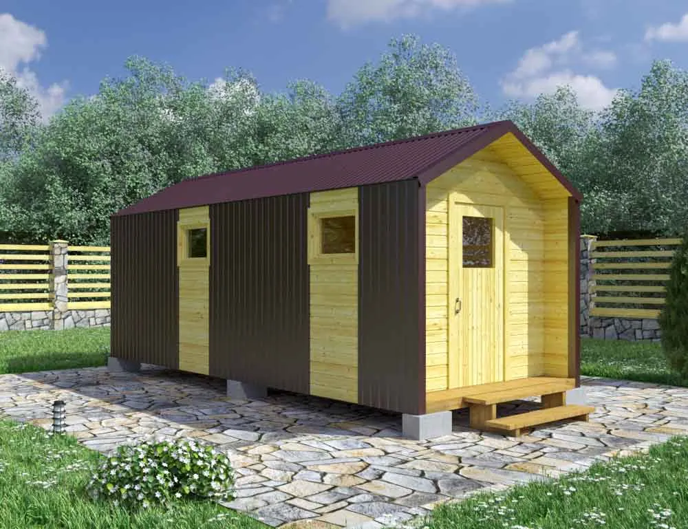 Бытовка для дачи в стиле хай-тек с цветным профлистом 6х2.46х2.414.4ДВП-Оргалит: